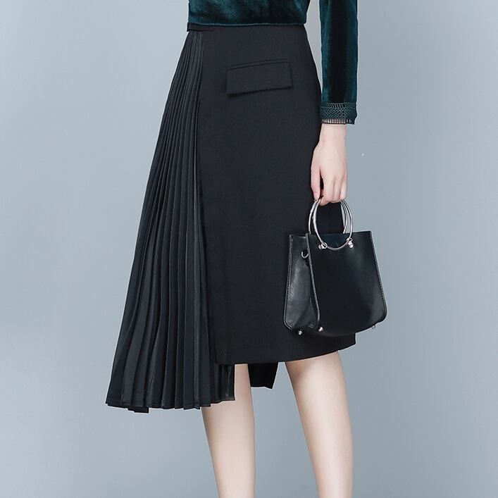 スカート レディース 春夏 秋冬 春 夏 秋 冬 黒 プリーツスカート ミディアム丈 プリーツ アシンメトリー ミモレスカート ひざ丈スカート モード 韓国 ファッション きれいめ オフィスカジュアル 上品 切り替え ミディアム ひざ下 ひざ丈 ブラック オフィス カジュアル OL 上品 大人 10代 20代 30代 40代 C-SAW0020