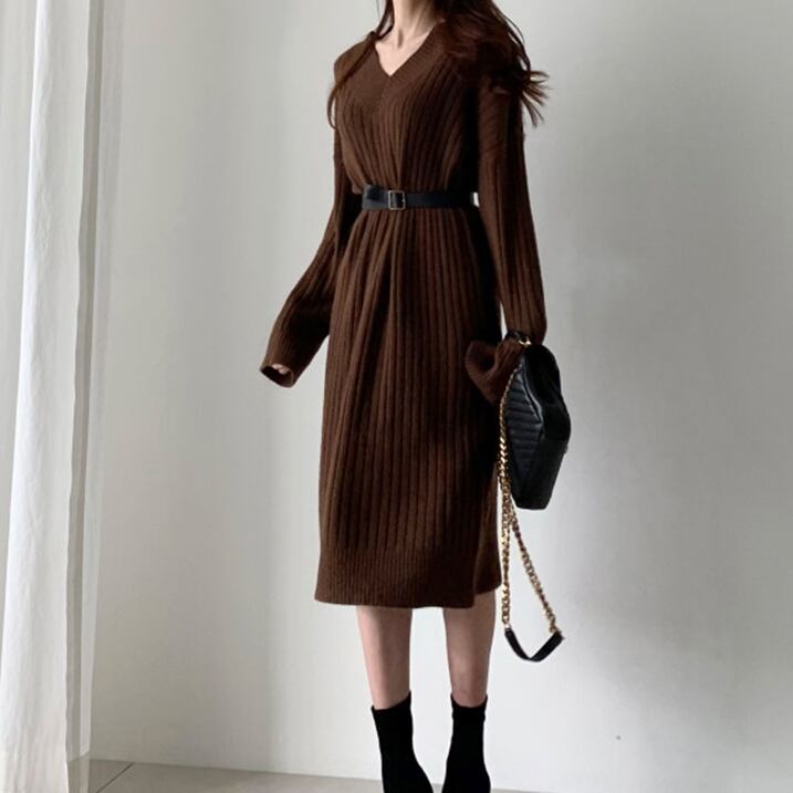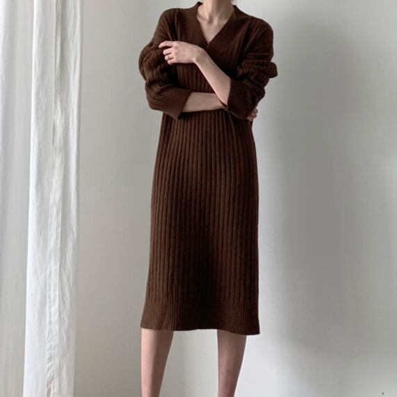 Vネック ニットワンピース C-OAW1025