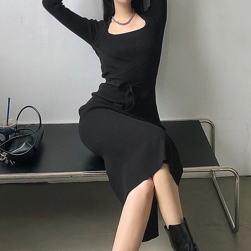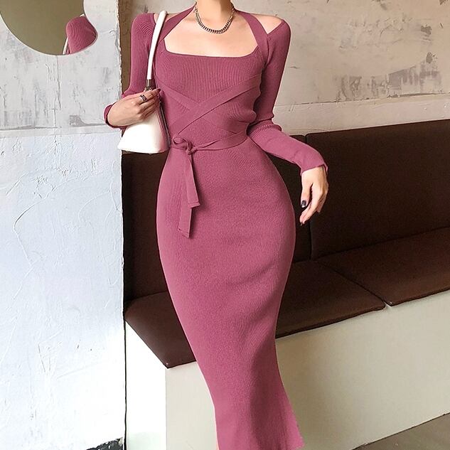 商品名:ホルダーネック タイト リブニットワンピース