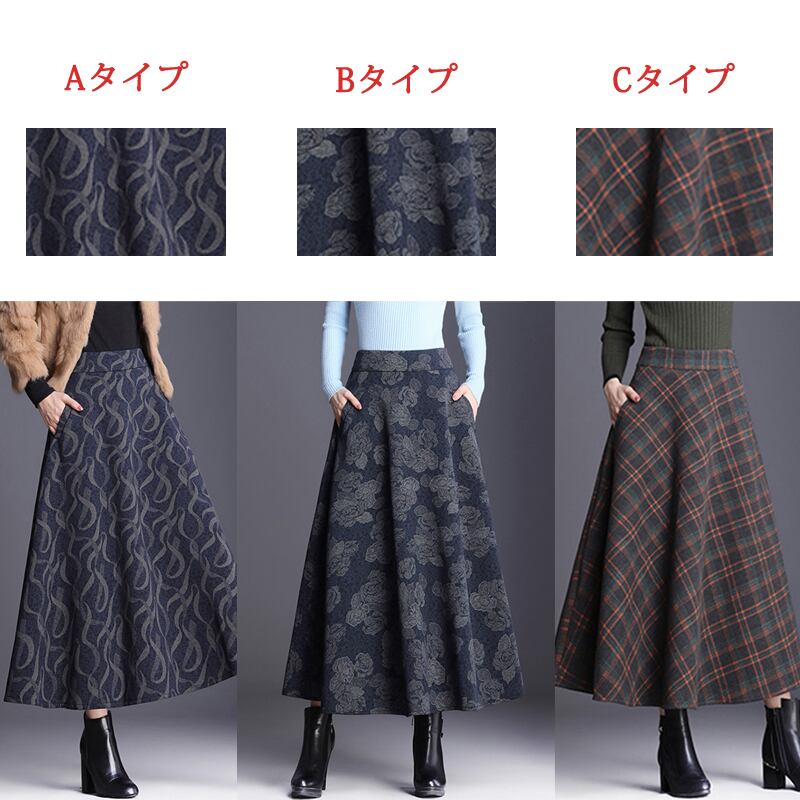 スカート レディース 春夏 秋冬 春 夏 秋 冬 黒 Aラインスカート フレアスカート ロングスカート ミディアム丈 ミモレスカート ひざ下スカート マキシスカート チェック柄 花柄 フラワー柄 螺旋柄 ウエストゴム モード 韓国 ファッション きれいめ オフィスカジュアル 上品 ポケット ミディアム ひざ下 ネイビー ブラウン オフィス カジュアル OL 上品 大人 10代 20代 30代 40代 C-SAW0027