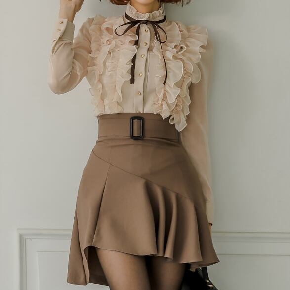 フリルブラウス & アシメントリー ミニスカート セットアップ C-WAW1010