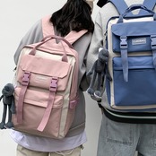 バックパック レディース リュック 春夏 秋冬 春 夏 秋 冬 黒 バッグ リュックサック かばん スクエア ボックス バイカラー スクエア型バッグ 縦長 部活 合宿 旅行 通学 学校バッグ 高校生 中学生 男の子 女の子 A4 B4 シンプル バッグパック バック ロゴ ブラック ピンク ライトブルー ブルー カレッジコーデ カジュアル デイリー お出かけ K-B0020