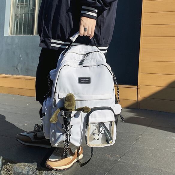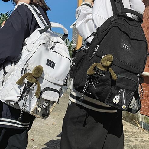 バックパック レディース リュック 春夏 秋冬 春 夏 秋 冬 黒 バッグ 大容量 リュックサック かばん ロゴ 大きめ 学校リュック 部活 合宿 旅行 通学 学校バッグ 高校生 中学生 男の子 女の子 A4 B4 シンプル バッグパック バック ロゴ ブラック アイボリー バッグパック 学校 カレッジコーデ カジュアル デイリー お出かけ K-B0036