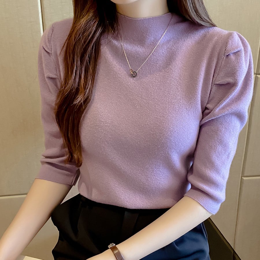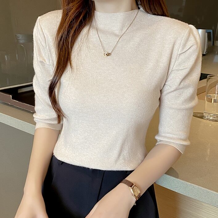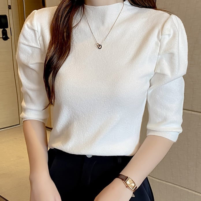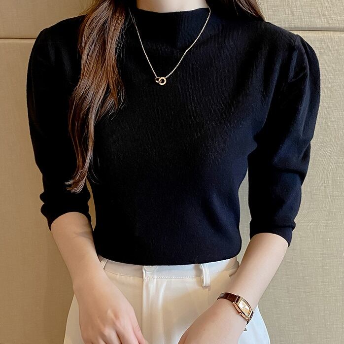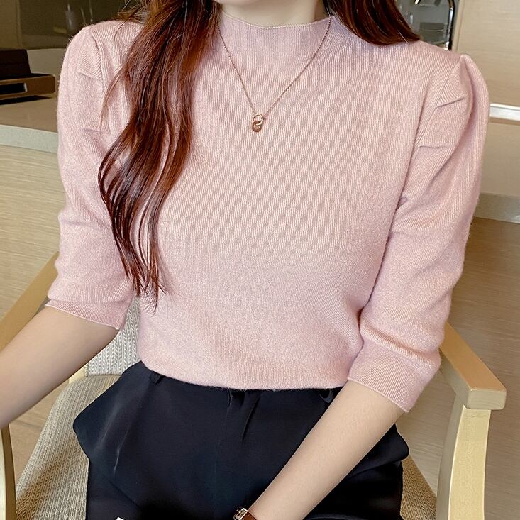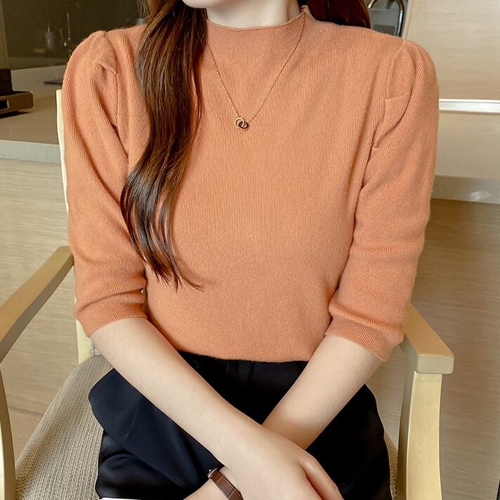 トップス レディース ニット 春夏 秋冬 春 夏 秋 冬 白 黒 ニット トップス 無地ニット 五分袖 半袖トップス パフスリーブ チュニック 無地 ファッション ニットトップス きれいめ シンプルシャツ ホワイト ピンク ライトパープル ベージュ オレンジ ブルー ブラック オフィスカジュアル 韓国 フェミニン シンプル オフィス カジュアル OL 上品 大人 40代 50代 C-TSS0062