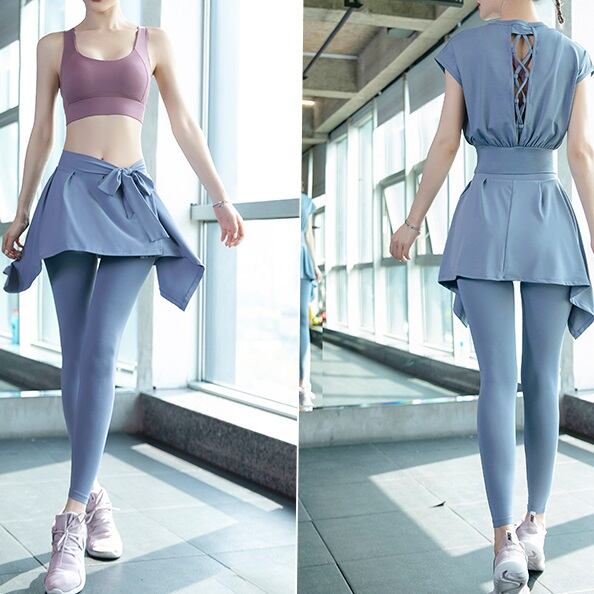 スカート付きレギンス、スポーツブラの4点セット!