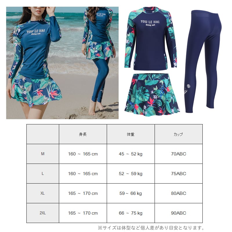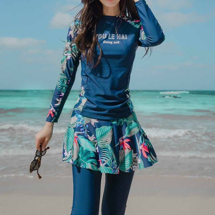 ラッシュガード 3点セット 水着 レディース 春夏 秋冬 春 夏 秋 冬 長袖ラッシュガード インナー付きスカート レギンス スカート ボタニカル柄 長袖 フィットネスウェア セットアップ スイムウェア トップス 大きいサイズ 水着 水泳 プール ビーチ 海 アウトドア リゾート ヨガウェア フィットネス ヨガレギンス ネイビー ダイエット トレーニングウェア スポーツウェア ランニングウェア カジュアル OL 20代 30代 40代 50代 K-M0002