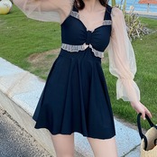 ワンピース 水着 レディース 春夏 秋冬 春 夏 秋 冬 黒 シースルーワンピース水着 ワンピース水着 シースルー 長袖 水着 長袖ワンピ 水着 フリル フレアワンピ スイムウェア 大きいサイズ 水着 水泳 プール ビーチ 海 アウトドア リゾート ブラック カーキ カジュアル OL 20代 30代 40代 50代 K-M0018