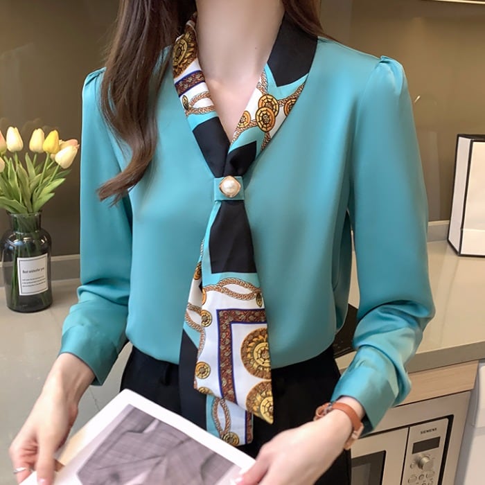商品名:スカーフタイ 長袖 ブラウス シャツ