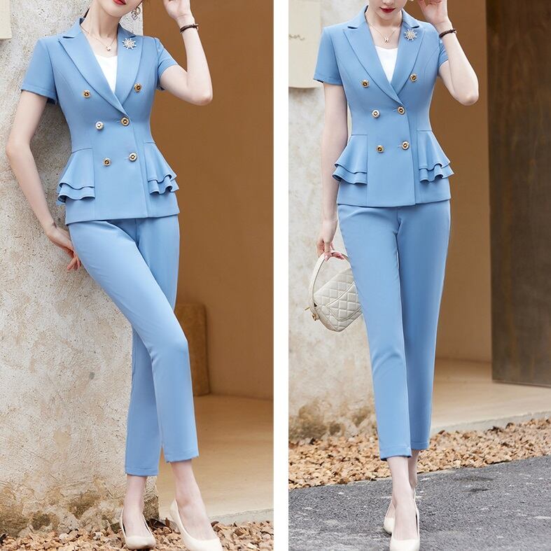 パンツスーツ レディース 春夏 秋冬 春 夏 秋 冬 黒 スーツ 上下セット 2点セット ジャケット パンツ セットアップ ダブルボタン セットアップスーツ 半袖 ダブルスーツ タイト ツーピース ビジネススーツ 金ボタン パンツスーツ 7分丈 レディーススーツ 韓国ファッション 大きいサイズ 韓国 オフィス OL オフィスカジュアル ビジネス 結婚式 パーティー お呼ばれ ブラック ピンク ライトブルー S M L XL 2XL 3XL 4XL 10代 20代 30代 40代 C-WAW1081
