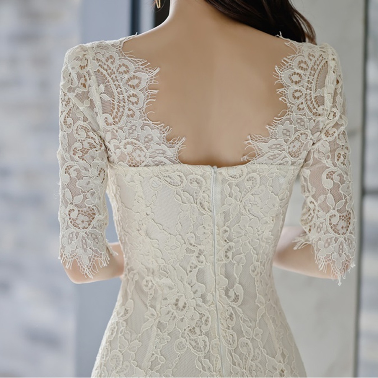 商品名:総レース 5分袖 タイトワンピース ドレス