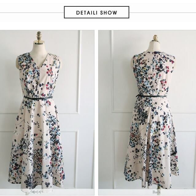 商品名:花柄 ノースリーブ Aラインフレアワンピース